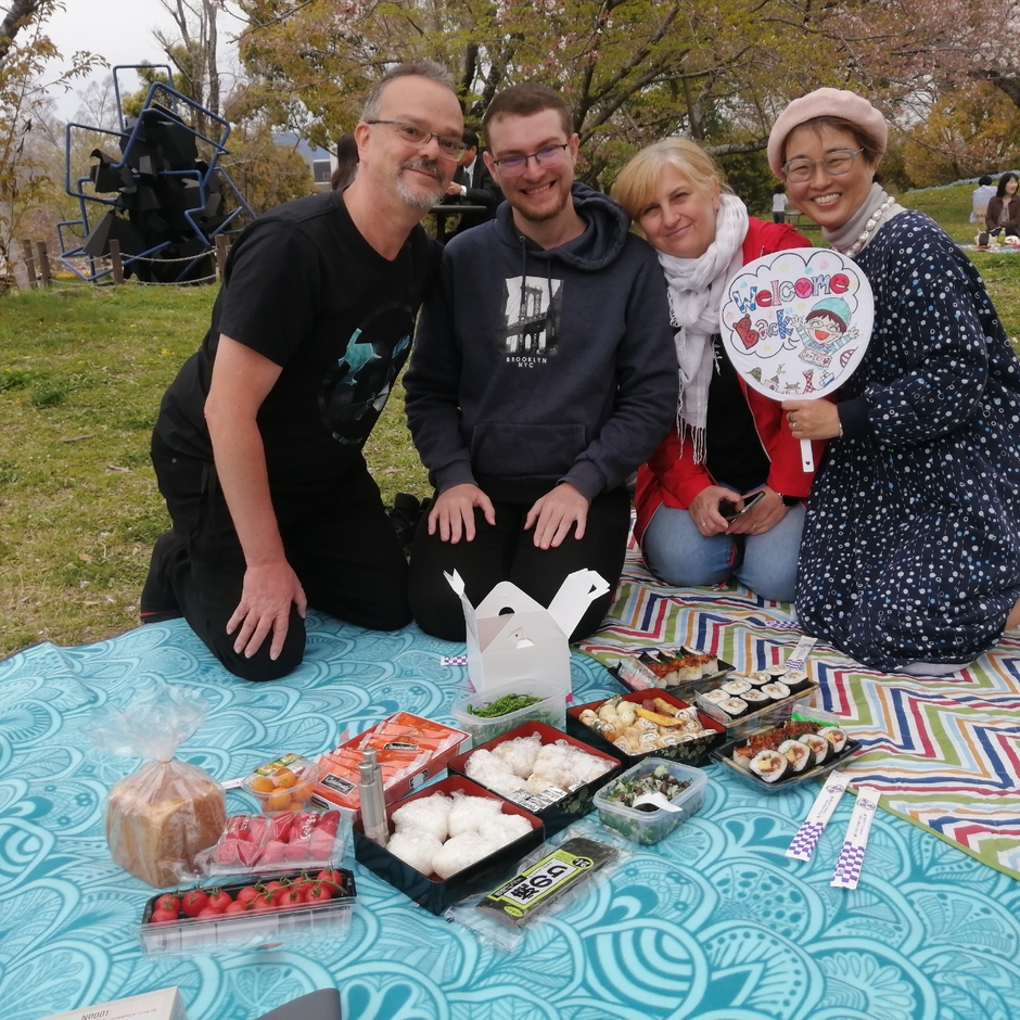 日本到着翌日に再会、早速日本らしいお花見体験を楽しんでいただきました。