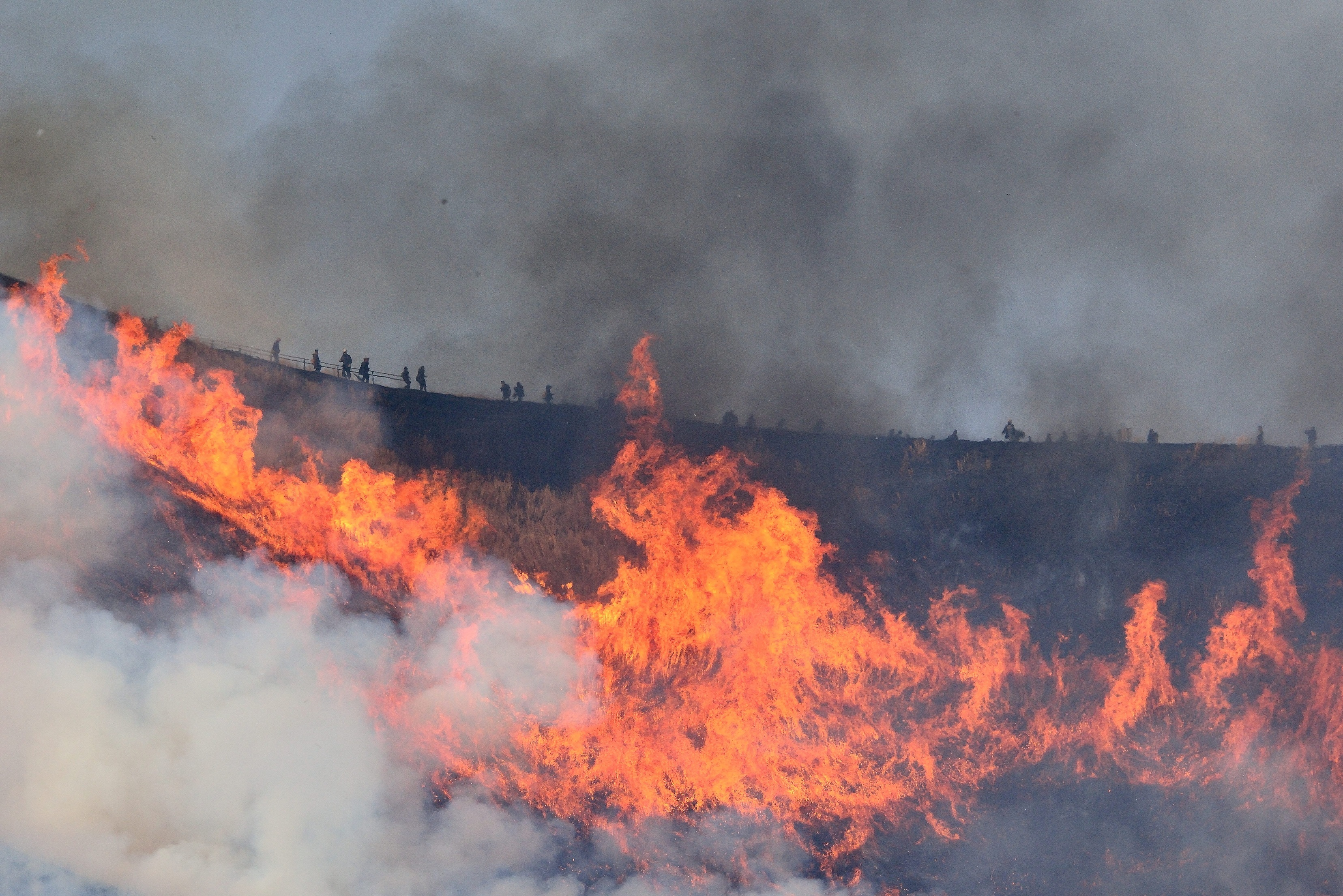 点火後に山麓から標高580メートルの山頂まで真っ赤な炎が駆けあがる様子は圧巻です!桜の里からは山肌を真っ黒に焼き尽くす景色を見ることができます。