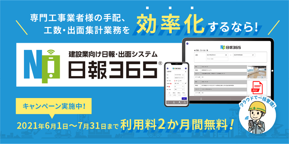 <建設業の専門工事業向け> 日報・出面システム「日報365」の リニューアル版を販売開始しました! ~販売を記念し、2か月間無料キャンペーンも開催~