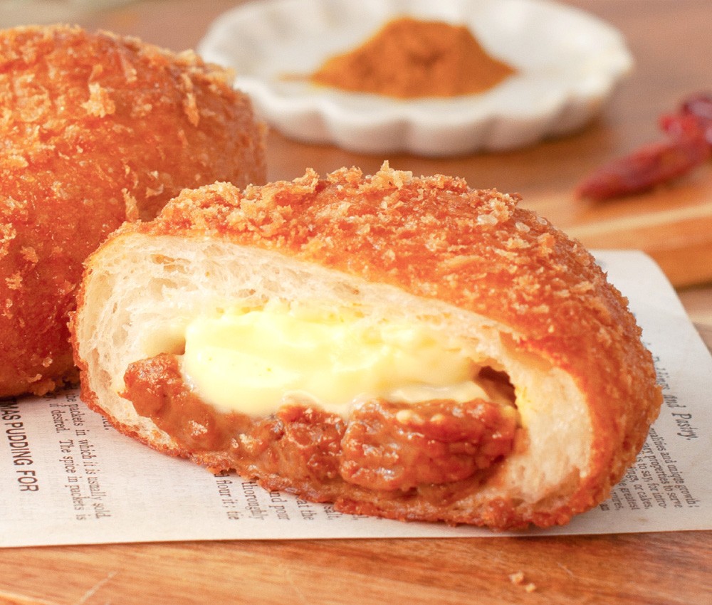 北海道産小麦「ゆめちから」を100%使用したパン生地で、特製カレールーと、北海道産生乳から作られたフォンデュチーズを包み込み、カリッと揚げています。衣はサクサク、パン生地はもっちり。ひと口かじると、中からとろ〜りと溶け出すチーズと、コク深いカレーが広がります。2021年のカレーパングランプリ®で最高金賞を受賞し、日本一に輝きました!