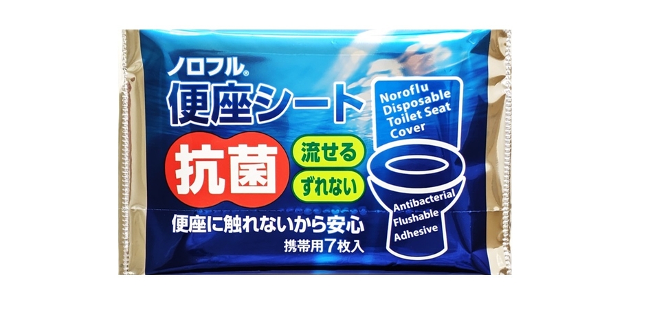 外出先のトイレは避けられないうえ、対策しにくく不安な場所の一つと思います。抗菌の『ノロフル便座シート』を使うと直接便座に触れず様々な汚れから身を守ることができます。