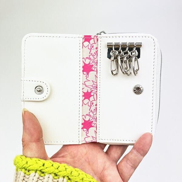 小銭を入れられるポケットの内側は、ピンクのかわいいイラストが、、、白いケースだからこそ、細かいこだわりが光ってます。