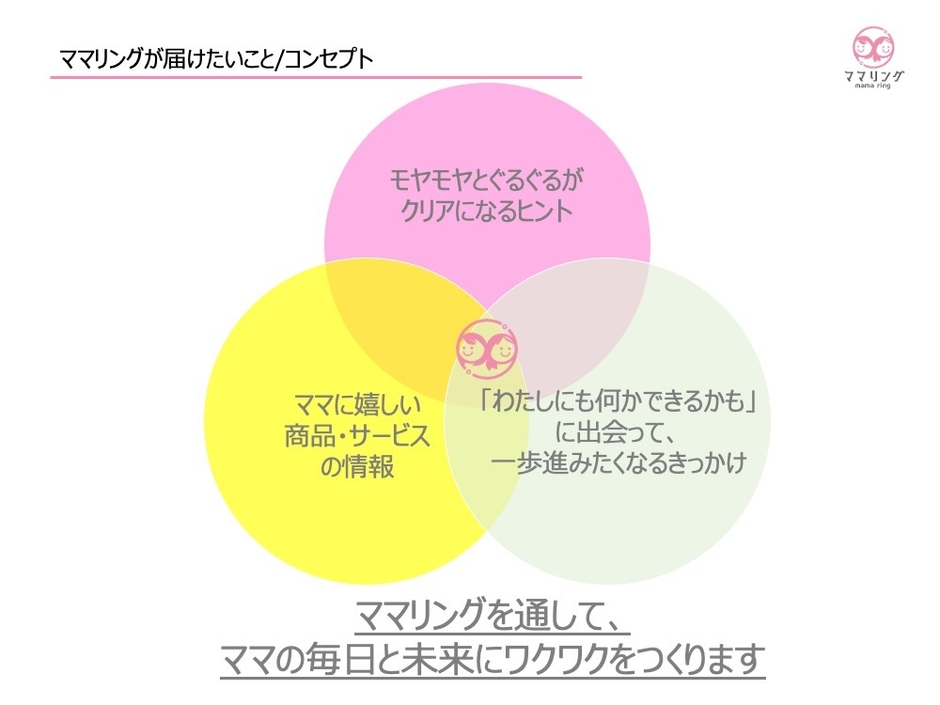の3点を軸として、ママリングを通してママの毎日と未来にワクワクをつくる