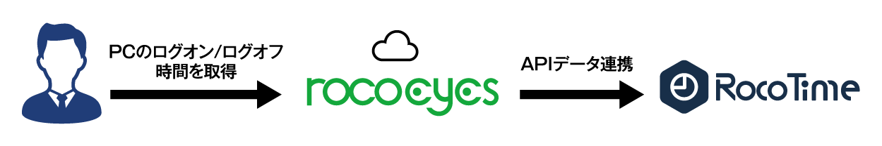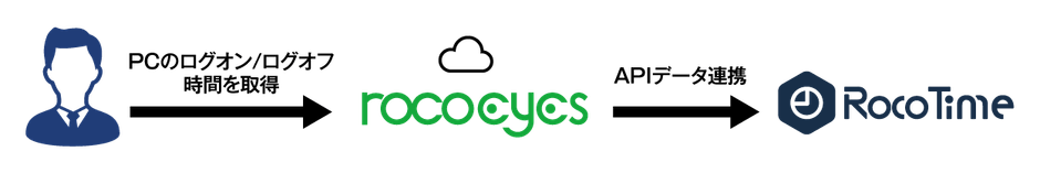 勤怠管理には、業界・業種、社員数の規模を問わず、約500のパラメータ設定により企業ごとの特有の就業規則に柔軟に対応する「RocoTime」を、IT資産管理にはPCやソフトウェアの稼働状況、ログ管理、デバイス制限などをクラウド上で一括管理する「rocoeyes」を使用します。自社製品である両システムの連携により、企業は従業員の働き方とIT資産の利用状況を包括的に把握し、コンプライアンス強化と業務効率化の実現につながります。