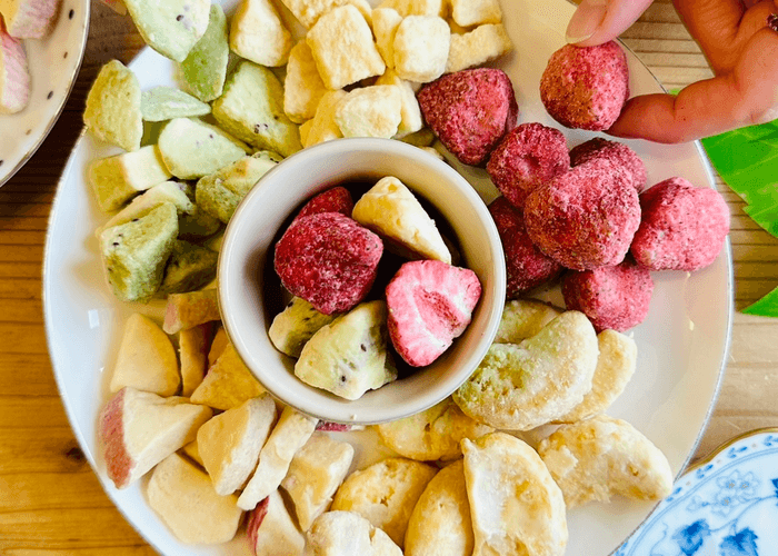 フルーツをフリーズドライすることで味や香りを残して、独自の含浸製法でホワイトチョコをたっぷりと染み込ませました。
