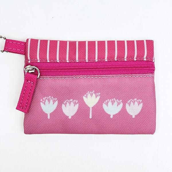 こちらはピンクベースの3連ポーチ。華やかで女性らしい雰囲気が素敵です。
