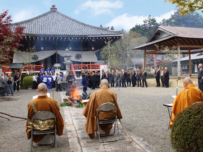 境内において護摩壇(炉)を設け浄火により世界平和、五穀豊穣、町内安全、信徒各家家内安全、 参詣者各位の諸願成就などの護摩木を焚き、観音さまや神仏をご供養し御祈願いたします。