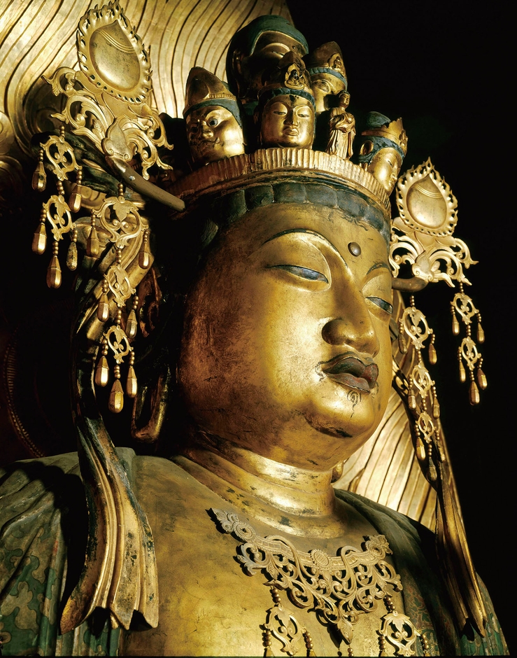 「いちいの観音さん」と呼ばれ親しまれている十一面観音像。観音の額の髪の生え際から足までの髪際高(はっさいこう)は2メートル39センチ、台座や光背を含めると5メートルを超える国内最大の十一面観音菩薩座像である。頭と体を一本の木から彫り出す一木造(いちぼくづくり)が特徴です。