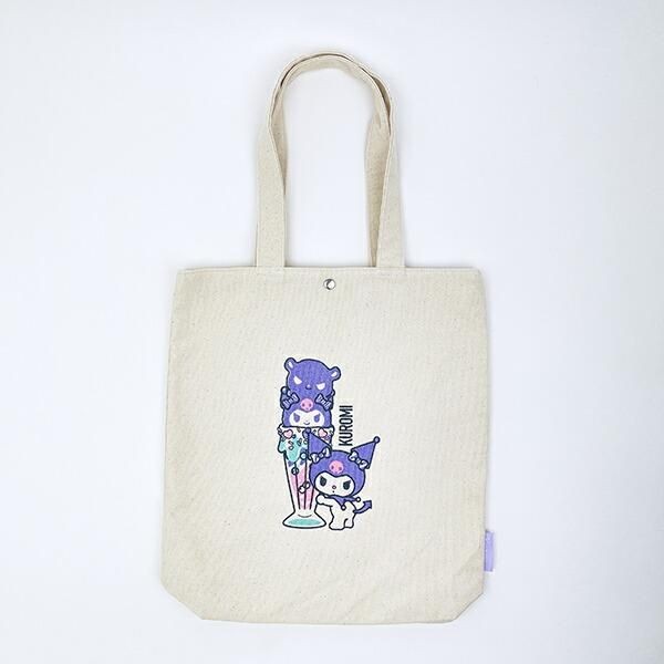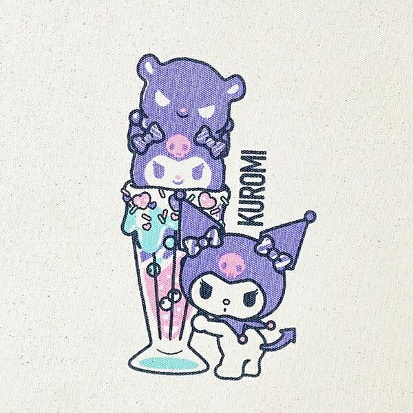 このトートバッグには大人気サンリオキャラクターのデザイン違いもございます。こちらは、 クロミです。クロミはクロミパフェ!パフェにはお友達のパグと一緒でチャーミング。食べたくなるかわいさかも。