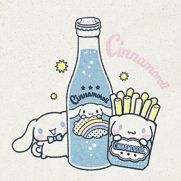 シナモンとフライドポテト、サイダーがデザインされています。どれもパッケージがシナモン仕様なのがチャーミングです。Cinnamorollという文字がちょっとしゃれでアメリカンチックです。