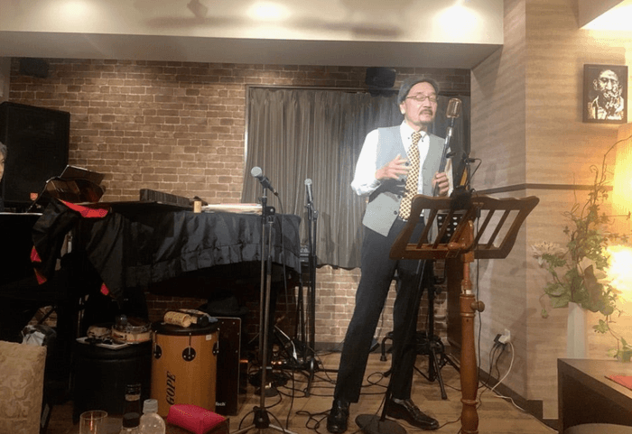 店主のチャーリー半田氏(本名:半田廣俊)は若い頃の吃音を乗り越え、歌の道を歩み始めました。
