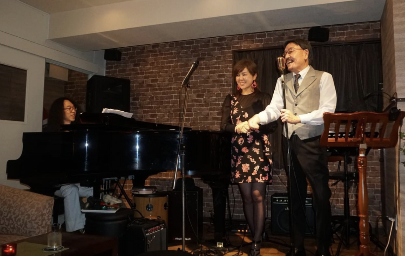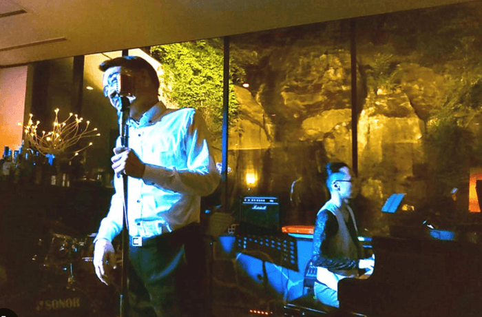 ピアノ・サックス・ベース・パーカッションのフル生演奏をバックに、好きな昭和歌謡やジャズを歌える特別体験が提供されます。