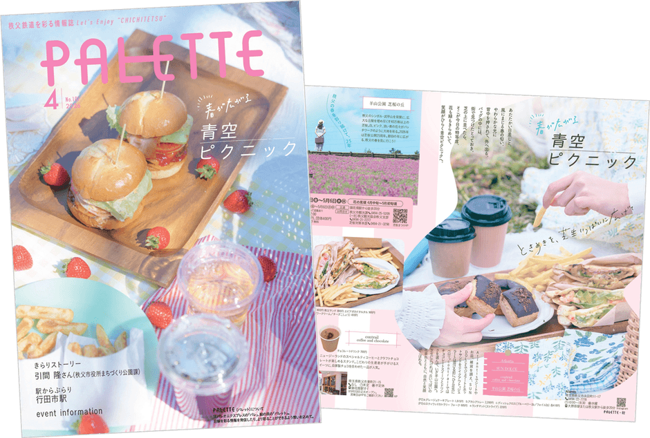「PALETTE」は、秩父鉄道が2017年11月号から毎月(※一時休刊あり)発行する、持ち歩きやすいB5サイズの情報誌(フリーペーパー)です。毎月25日前後から秩父鉄道の有人駅のほか、埼玉県内外の約600箇所で約60,000部を配布しています。