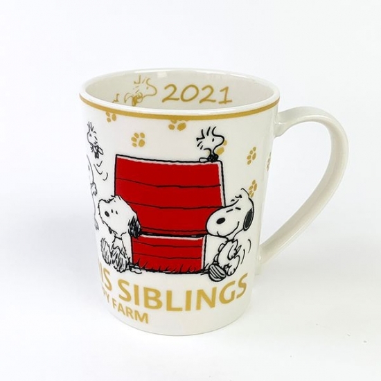 世界中から愛されているスヌーピーから、2021年バージョンのイヤーズマグが入荷しました!スヌーピーと兄弟達が登場する賑やかなデザインで、内側には「2021」のロゴがあります。シンプルなホワイトベースにゴールドのロゴでご年齢問わずお使いいただけます♪350mlとしっかり容量が入り安定感のある形なので、ティータイムもゆったりとお楽しみいただけます。ギフトやプレゼントとしても喜ばれると思います♪