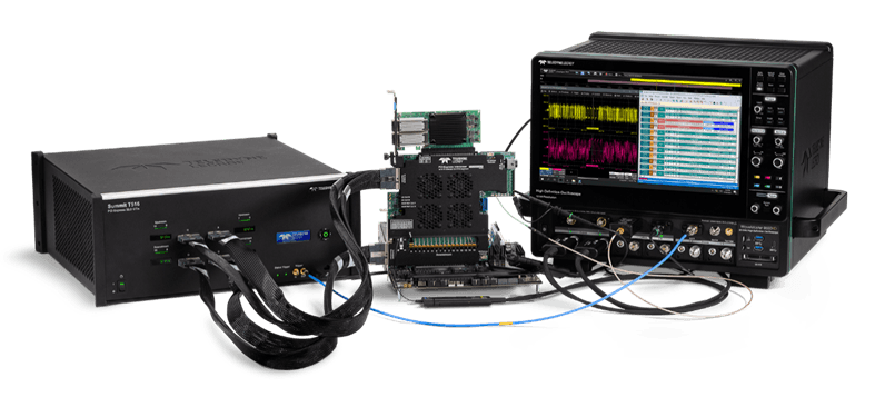 これらの機器によって構成されるPCIe 6.0リンクテスター(以下画像参照)により、ライブリンクの問題を迅速に特定し、新製品の市場投入をスピードアップすることができるようになります。