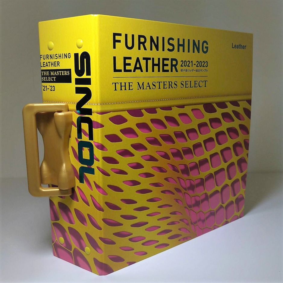 SINCOLブランドの椅子張り資材をグループ各社へ供給を行うシンコールマテリアル株式会社(本社:名古屋市中川区、代表取締役社長:矢追和彦)は、3年振りに椅子張り用レザーサンプル帳を刷新。 「 FURNISHING LEATHER/THE MASTERS SELECT 2021-2023 」は、商品自体の充実は勿論、WebカタログやAIスピーカーAlexa(アレクサ)での商品検索など色々な工夫が盛りだくさん。外装も派手に目を引くデザインで「なんだこれ!?」の声が出る意匠性にこだわった。開くのがワクワクする。まるで椅子張りレザーのワンダーランド。そんな実用性と遊び心が満載の仕上がりとなった。
