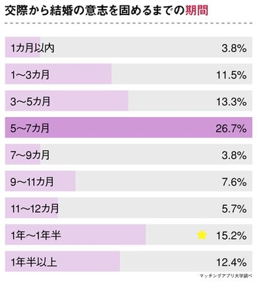 交際から結婚の意志を固めるまでは「半年前後」が多い