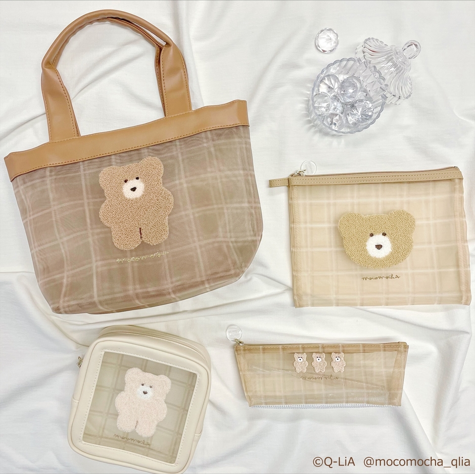 新作グッズは涼しげなメッシュ素材を使用していて、春夏のお出かけにぴったり。軽くて持ちやすいミニトートバッグや、カバンの中でかさ張らないフラットポーチ、収納力たっぷりなブロックポーチ、ランチの後やお泊りに大活躍の歯ブラシセットを発売します。