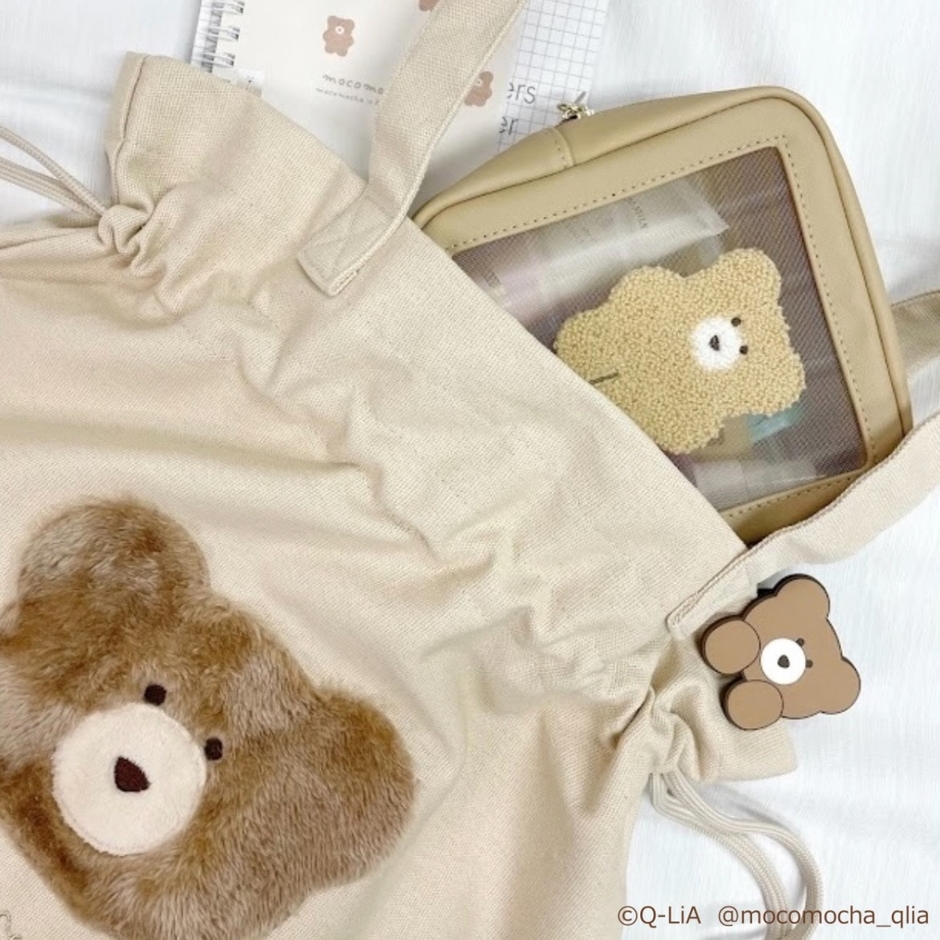 モコモカはくまのようなふしぎな生き物。フワフワで独特なフォルムとつぶらな瞳が人気のキャラクターです。