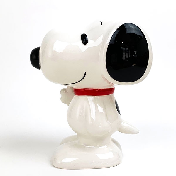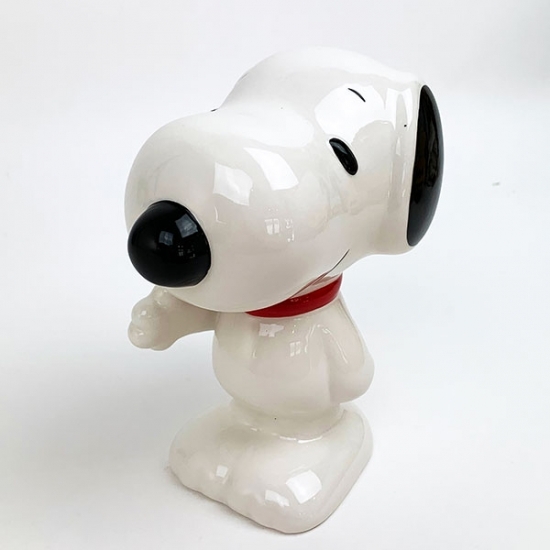 お座りポーズのスヌーピーもあります。こちらも陶器製で、サイズは100×155×120mmです。赤い首輪がチャームポイントになっています。