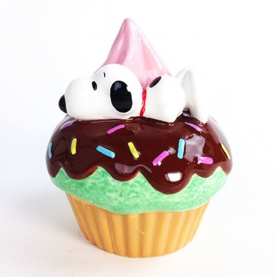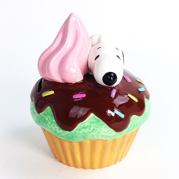 おいしそうなカップケーキの貯金箱もオススメです。ストロベリーのクリームの横に、寝そべったスヌーピーが♪