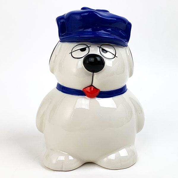 手を差し出しているポーズがキュートな、陶器の貯金箱です。表情もニッコリしていて癒されますね。足元が広めの作りなので、安定感もバッチリ♪サイズは9.5×18×14cmです。