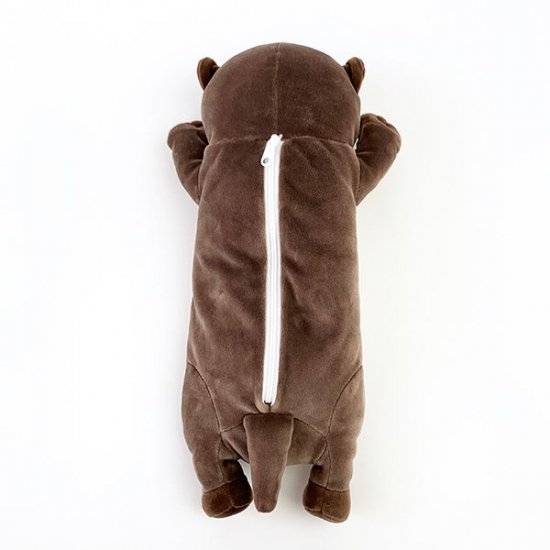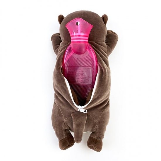 背中のファスナーを開ければ、湯たんぽの収納スペースがお目見え♪柔らかい素材なので、出し入れも楽々です。