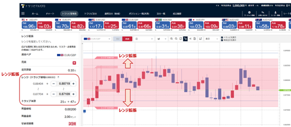 稼働中のトラリピ注文に対して、レンジを後から広げることができるようになりました。相場の変動に応じたレンジの見直しを行いやすくなります。