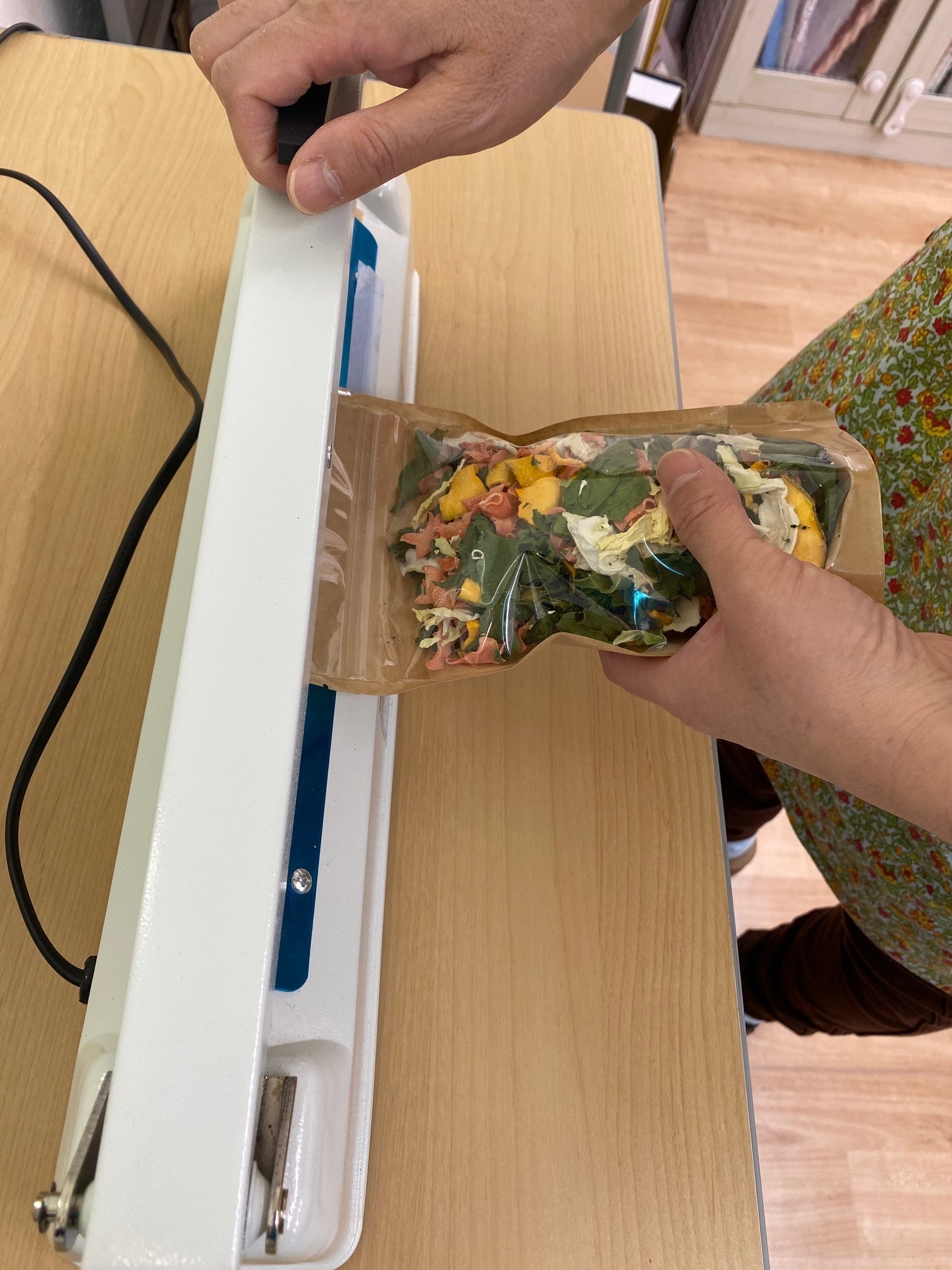 小林館長とアクト杉浦さんは打ち合わせを重ねる中で、「カピバラが食べている野菜と同じにする」ことを重視。これまでは必ず入れていた大根は使用せず、ブロッコリーやカボチャ、キャベツの野菜を採用することにしました。しかし、これらの野菜は硬さや色味の問題から乾燥加工には不向きだと感じ、避けてきたものでした。