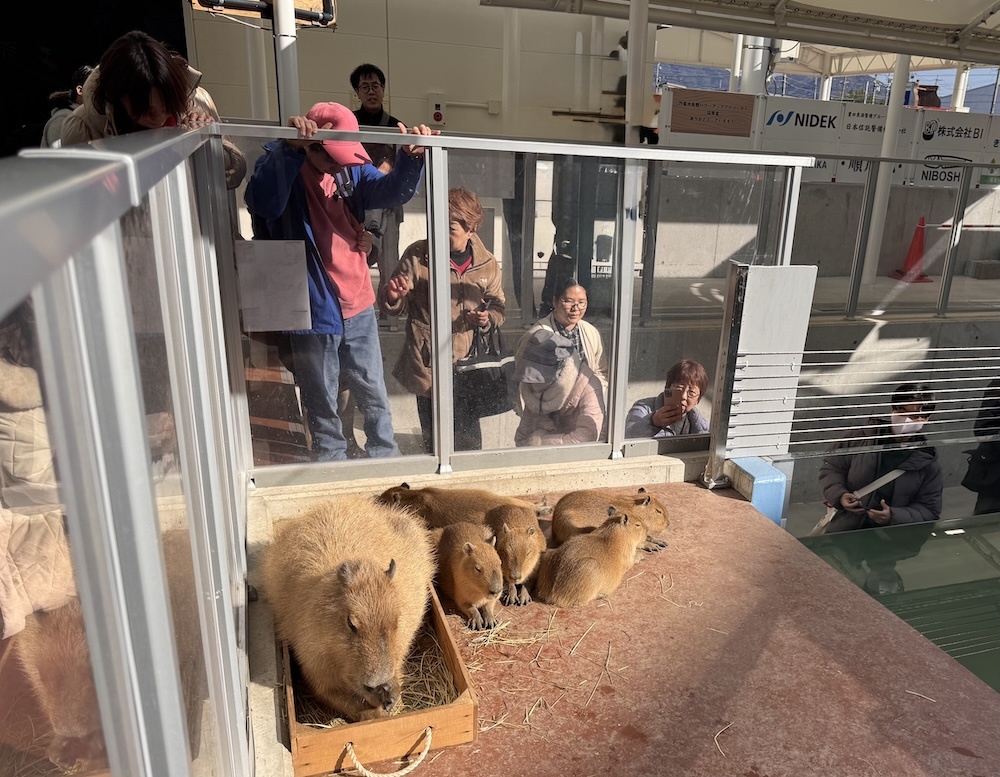 納品後は、みんなでカピバラに対面しました。野菜をゆっくりと味わう姿や、気持ちよさそうに眠る様子を眺めながら、「癒される」「かわいい」と、自然と声がこぼれ、和やかな時間が流れました。