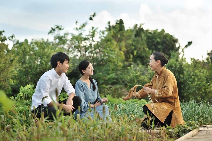 竹富島で五穀といわれる粟、麦、豆、芋、米を使用したランチを提供します。ランチの前には、施設内で育てている芋の収穫体験も行います。珊瑚礁が隆起してできた竹富島は、山や川がなく、作物が育ちにくい環境です。かつては物流も盛んではなかったため、作物が育たないことは生きるための食糧がないことを意味しました。そのため、種子取祭をはじめとした五穀豊穣を祈願する祭事が生まれ、今でもその文化が大切に受け継がれています。そうした背景や畑文化にまつわる話を交えながら、芋を収穫します。