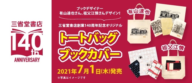 株式会社三省堂書店(本社:東京都千代田区)は、2021年4月8日に創業140周年を迎えたことを記念して、書籍のカバーデザインや装丁の作成を通して本の魅力を最大限に引き出すブックデザイナーとタッグを組んで制作した、オリジナルのトートバッグ・ブックカバーを7月1日に発売いたします。