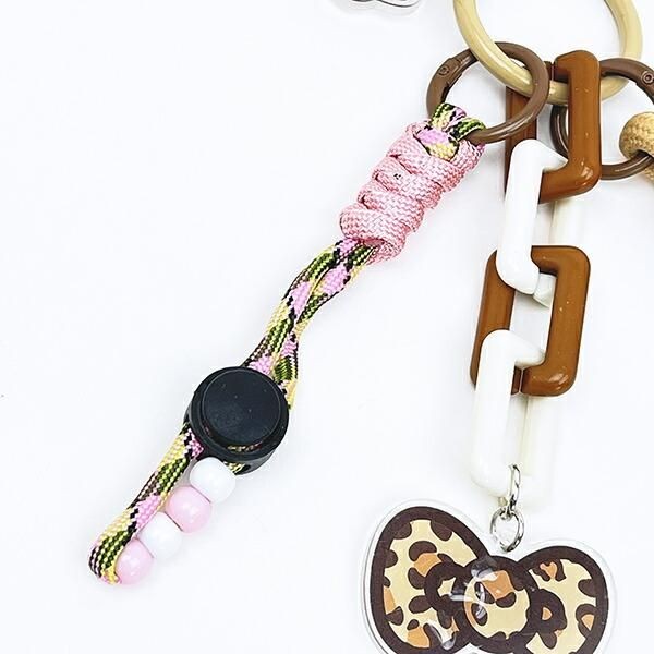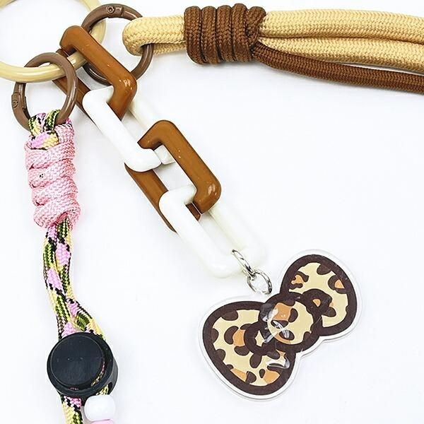 シックな茶系のストラップにちょっと入ったピンクが可愛さを上げてくれるデザイン。秋冬のモノトーンコーデだったり、レザー調の大人っぽいバッグなどに合わせるとバランスが効いた可愛さをプラスできますよ。