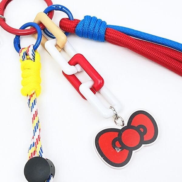 定番カラーではありますが、可愛いに全振りせずにオシャレにも振れるのが差し色の青色でしょうか。キティちゃんのお洋服のカラーですが、この色が入ったことで”赤・白・青”のトリコロールカラーが生まれて、シンプルなバッグにつければ目をひくアクセントになることでしょう。
