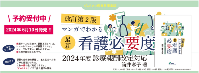 \大ヒット書籍の第2弾!/複雑な看護必要度をわかりやすく解説!『最新 看護必要度-マンガでわかる-(2024年度 診療報酬改定対応)』が6月10日に発売されます。現在予約受付中!