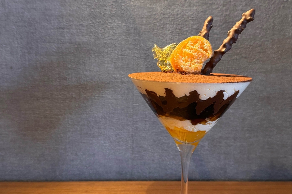 内容:【オレンジ香るティラミスパフェ】マスカルポーネ、コーヒーゼリー、オレンジピール、クッキー、チョコソースを使用した“食べ飽きない”パフェ