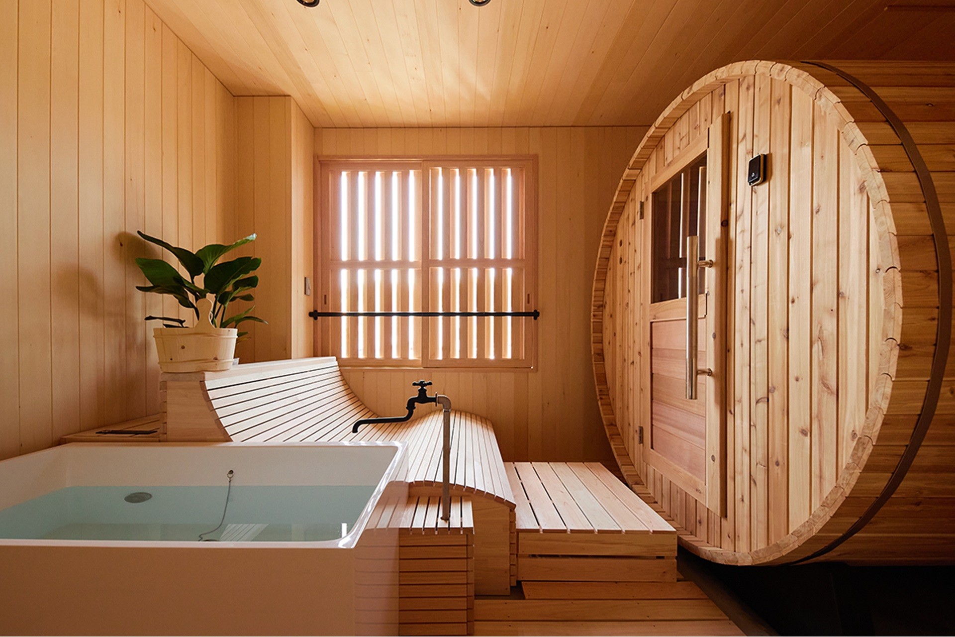 秋保風雅は、“夜を彩る大人の宿”をテーマに〆パフェやアフターサウナのモクテルを愉しむBAR、フィンランドサウナ、貸切露天風呂などを完備した、大人が夜ふかしを愉しめる宿です。