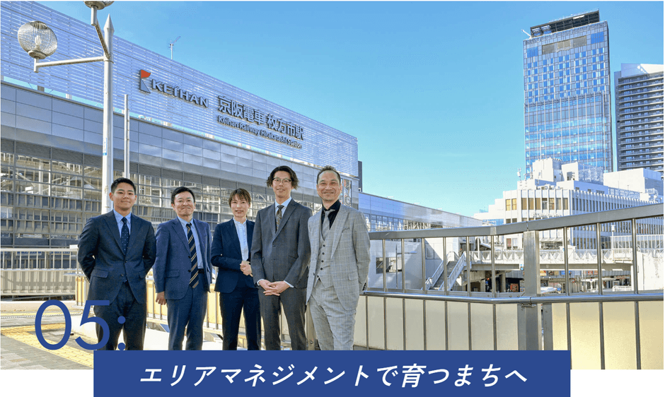 一連の取り組みの中で、京阪グループは「『まちを育てるまちづくり』を駅から始めます」と宣言し、市街地再開発事業を事業協力者として推進するとともに、エリアマネジメントによるエリア価値の向上を目指して、枚方HUB協議会の創設にも携わってきました。