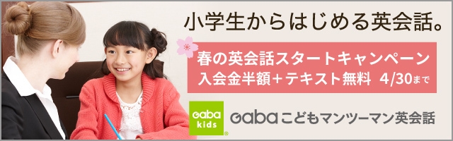 株式会社GABA(ガバ)(本社:東京都新宿区、代表取締役社長:中村 誠)は、Gabaこどもマンツーマン英会話(以下、Gaba kids)にて4月30日(金)までの期間限定で、入会金半額、さらにテキスト1レベル分が無料になる「春の英会話スタートキャンペーン」を実施します。
