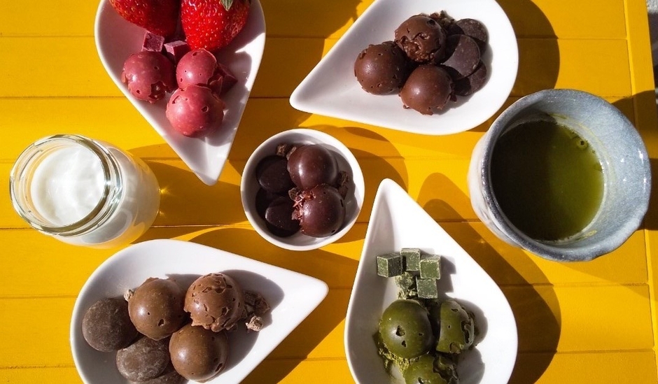 フレーバー:“ビター”“ミルク”“ハイカカオ”“いちご”“抹茶”