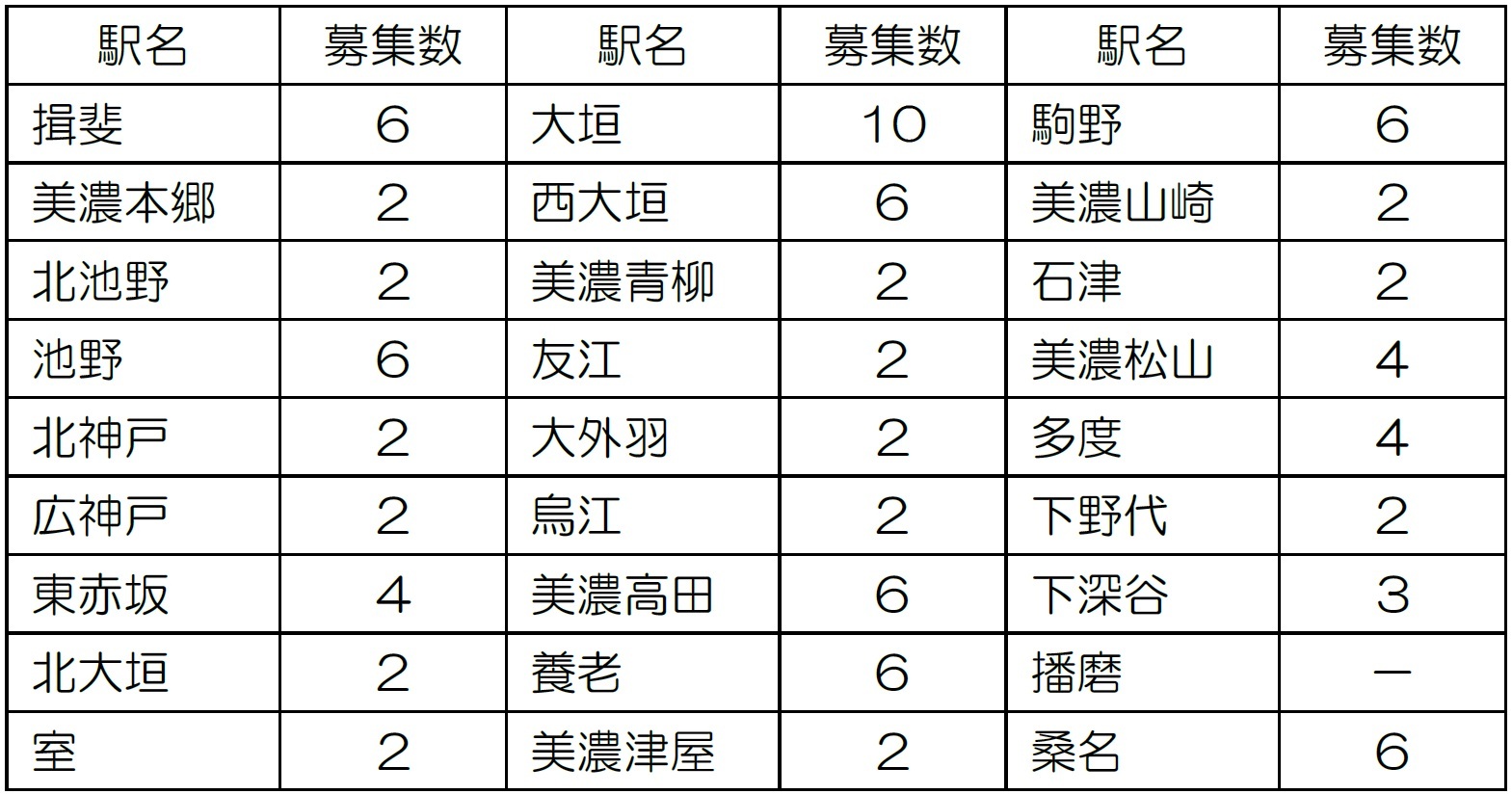 ・設置場所は、桑名駅から揖斐駅のうち播磨駅を除く26駅です。