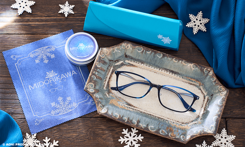 ・眼鏡拭き、眼鏡ケースにはそれぞれロゴと雪の結晶をデザイン