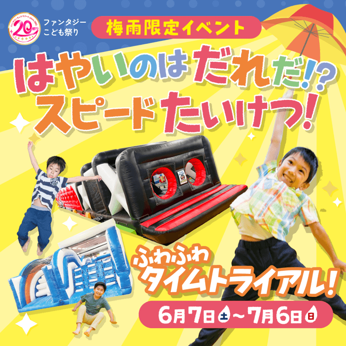 全国で10店舗を展開する日本最大級の室内遊園地「ファンタジーキッズリゾート」(運営:ファンタジーリゾート株式会社、代表取締役社長:八杉 政彦)は、20周年を記念する特別企画の第三弾として、梅雨の時期をさらに盛り上げるイベントを2025年6月7日(土)より全国の店舗で開催します。
