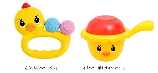 赤ちゃんに人気のアヒル隊長シリーズから お風呂でもお部屋でも楽しめる新商品が登場! 「おふろベビーベル」「ベビー手おけ&シャワー」 主な玩具専門店、量販店で5月8日(土)より発売開始