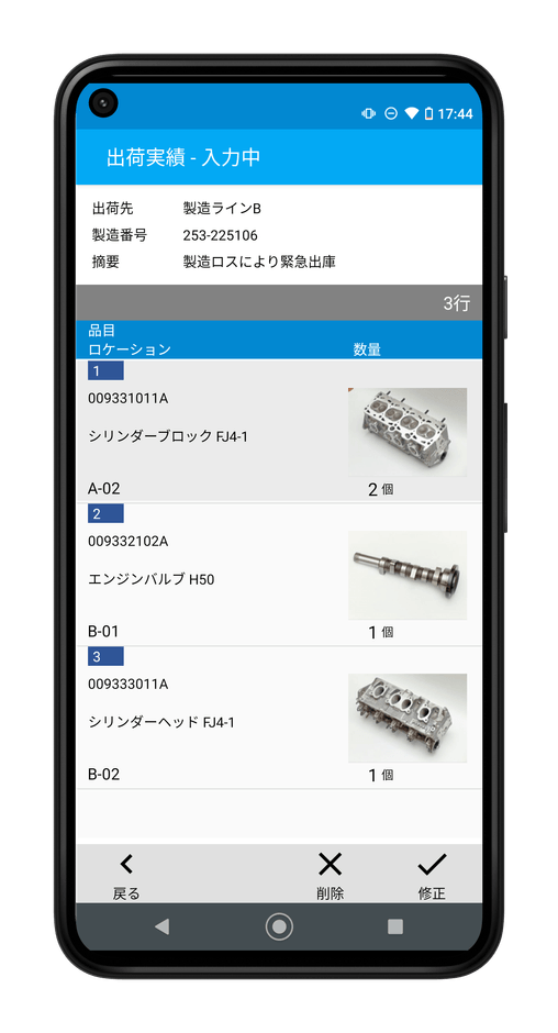 また、現場で精度の高い入出荷の登録ができるよう、スマートフォンやハンディターミナルで入力中の内容確認や修正・削除を行える機能も追加しています。