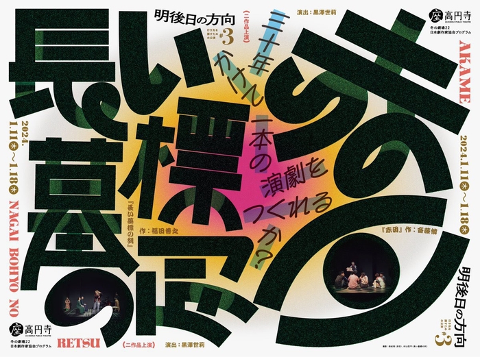 明後日の方向(主宰:黒澤世莉)主催、行き先を探すための公演#3 二作品上演『赤目』『長い墓標の列』が2024年1月11日 (木) ~2024年1月18日 (木)に座・高円寺1(東京都杉並区高円寺北2-1-2)にて上演されます。