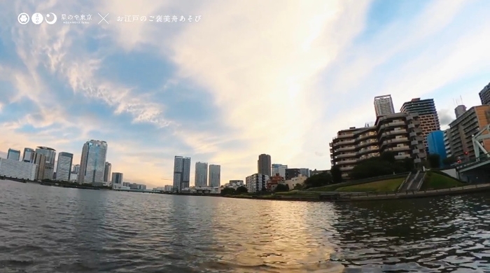 星のや東京では、オープントップバスで東京の空を眺めながら歴史や時代の最先端を行く街の雰囲気を感じる「東京絶景ナイトバスクルーズ」、地上160メートルのビルの屋上で東京を見渡し、風を感じながら深呼吸をする「天空深呼吸」、貸切舟の上で神田・日本橋・人形町の老舗の味を楽しむ「お江戸のご褒美舟あそび」など、三密を回避しながらリフレッシュできる様々なアクティビティを提供しています。普段から東京に慣れ親しんでいる方にこそ知っていただきたい、いつもとは違う目線で楽しむ「もうひとつの東京」をよりリアルに感じていただくため、360°動画を制作しました。スマートフォンを好きな方向に向けたり、画面をスクロールしたりすることで、より開放感や臨場感を楽しむことができます。