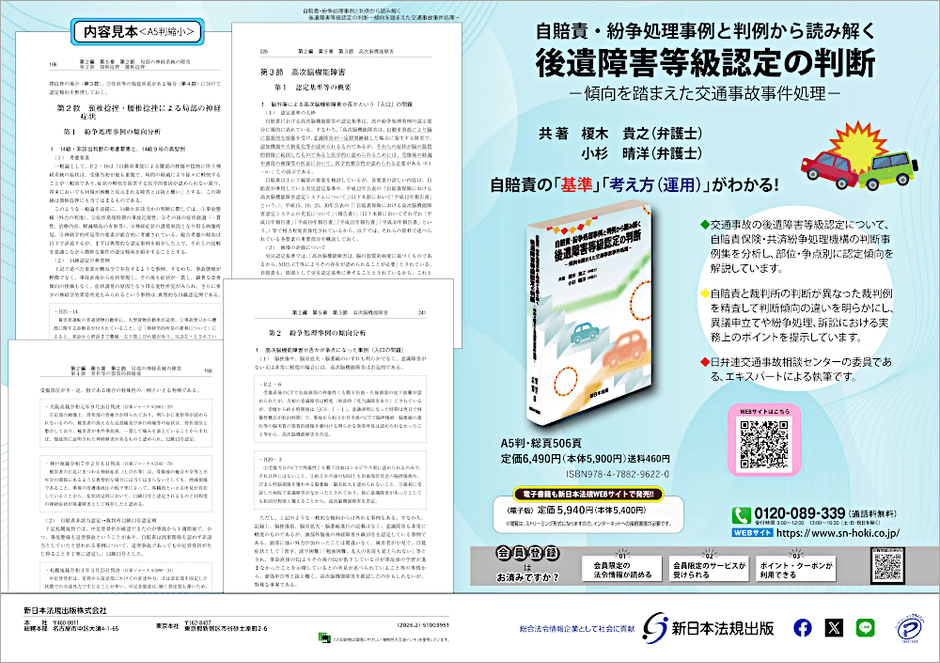 新日本法規出版株式会社(所在地:愛知県名古屋市中区、代表取締役社長:河合誠一郎)は、新刊『自賠責・紛争処理事例と判例から読み解く 後遺障害等級認定の判断-傾向を踏まえた交通事故事件処理-』を2026年3月11日(水)に発売いたしました!