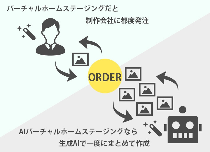 これまで、「家具消し」「家具置き」の物件画像を作成するには、専門知識や技術が必要であり、都度、制作会社に依頼を行う必要がありました。