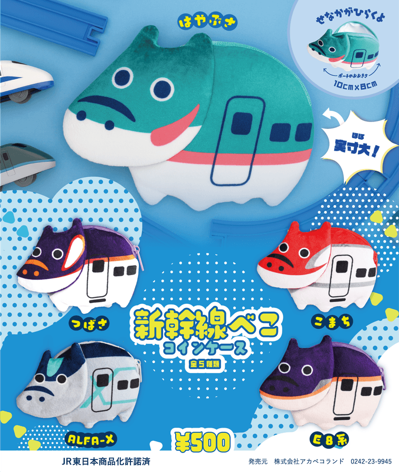E5系(はやぶさ)/E6系(こまち)/E8系/E3系(つばさ)/ALFA-Xなどのカラーリングを、赤べこ型のコインケースに再現しました。
